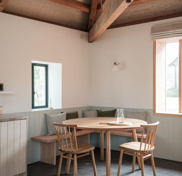 We move to handwork. Every edge is softened so sleeves don’t snag and elbows rest comfortably. Natural marks like small knots are smoothed so they add character without catching. Surfaces are sanded in gentle steps until the table feels even from corner to corner. Corners can be more rounded for families with young children or kept squarer for a sharper look—both are finished to feel good in the hand.